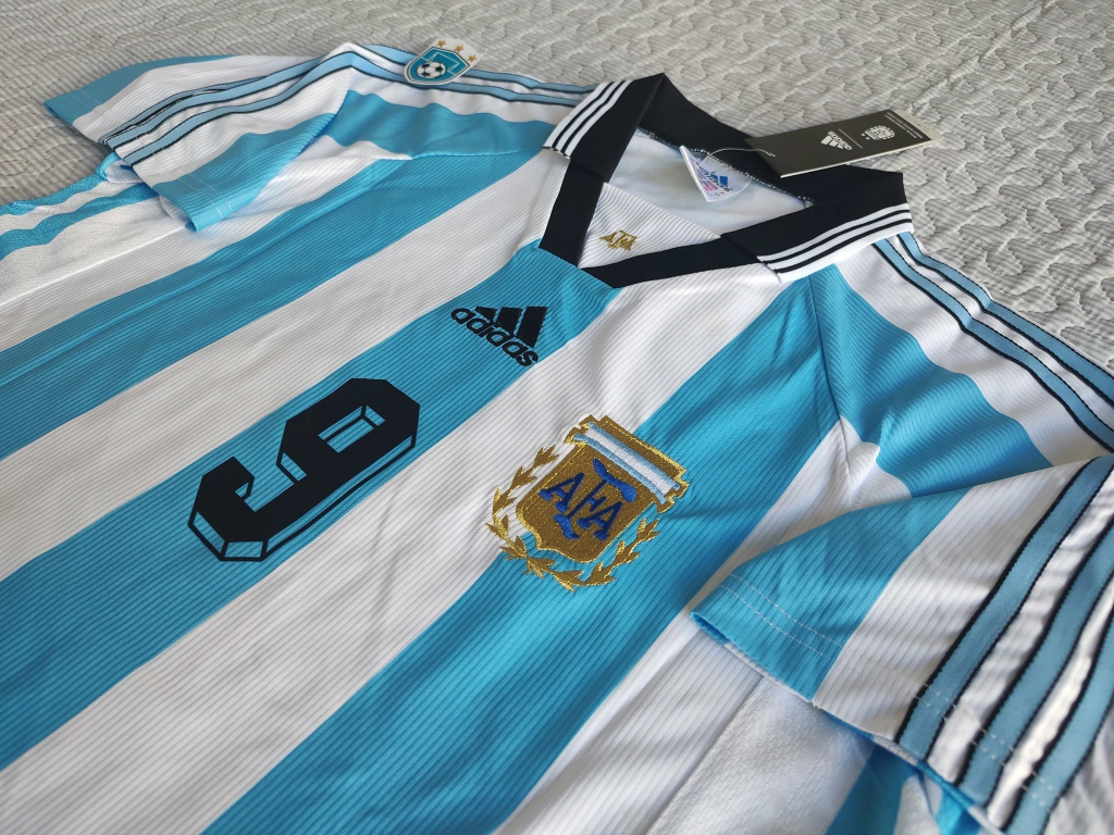 Camiseta titular de la selección Argentina del Mundial 1998 con Ortega 10 o Batistuta 9
