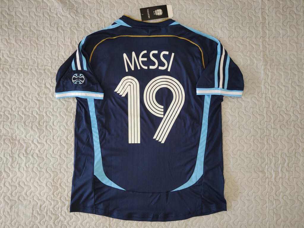 Camiseta suplente azul la Selección Argentina del Mundial 2006 con dorsal de Lionel Messi 19 sin parches en oferta Talle M