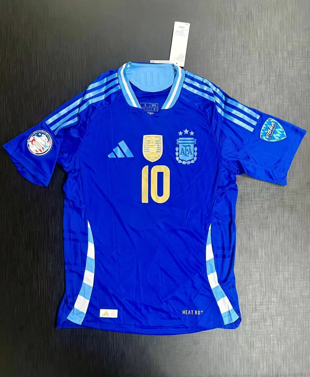 Camiseta titular de la Selección Argentina en versión jugador (HeatRdy) 2024 con o sin Lionel Messi 10 con parches de Copa America 2024 y de Campeón de Copa America 2021