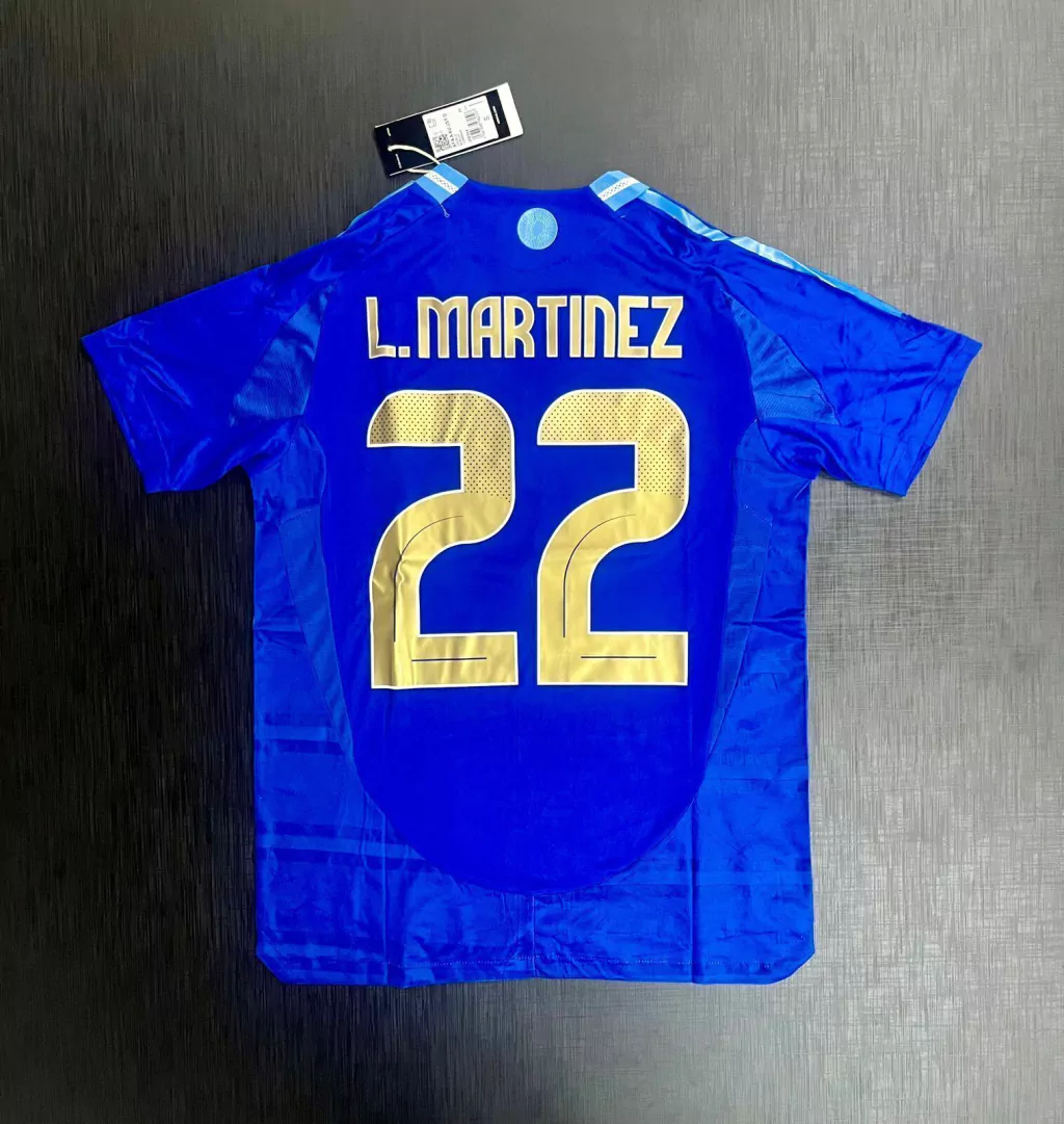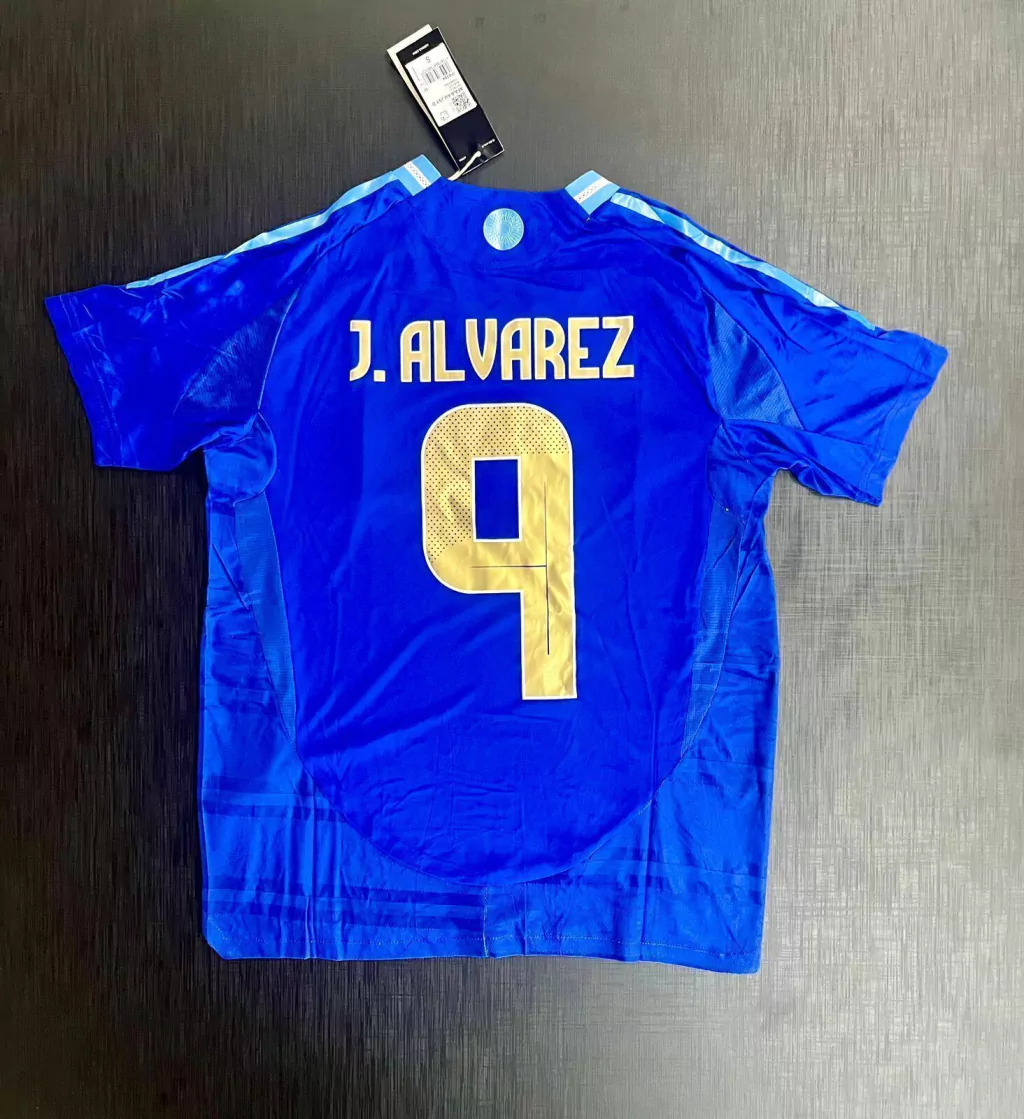 Camiseta suplente azul de la Selección Argentina en versión jugador (HeatRdy) 2024 con parche de Campeón del Mundo: