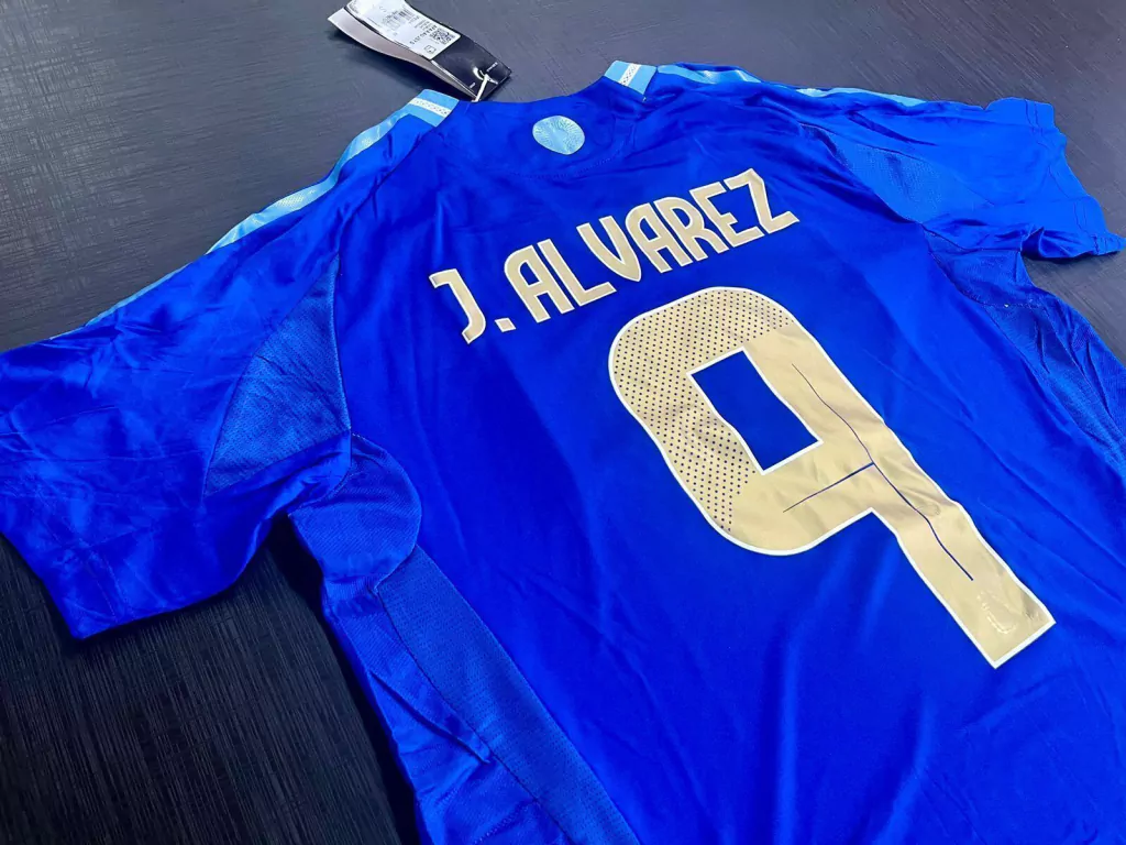 La versión jugador, la tela es más elastizada. Tiene los detalles termosellados y con relieve para mejor terminación.