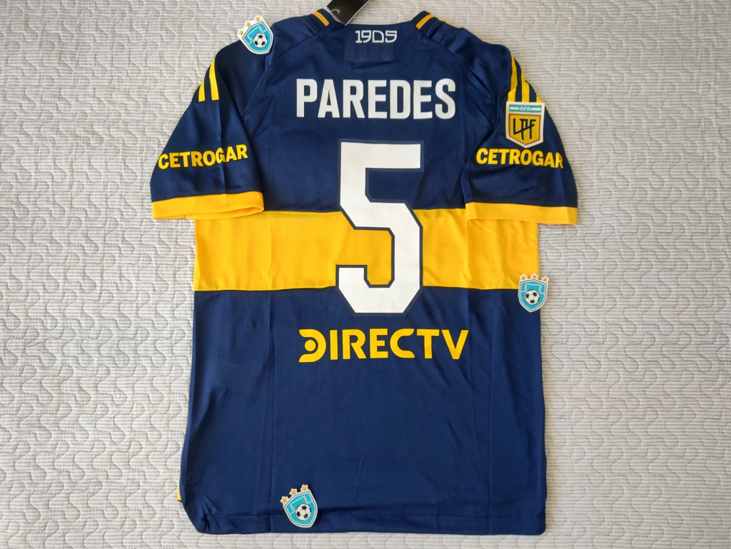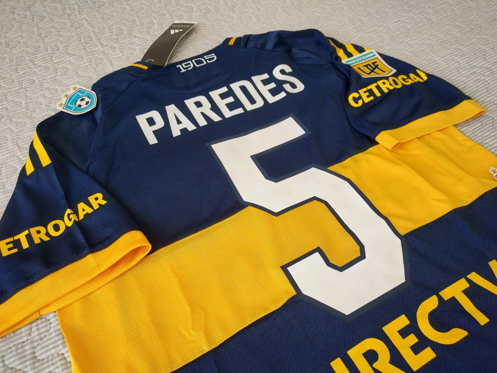Camiseta titular del Boca Jrs temporada 2025/26 en versión jugador (HeatRdy) con estampado de Leandro Paredes 5 y parche de la LPF