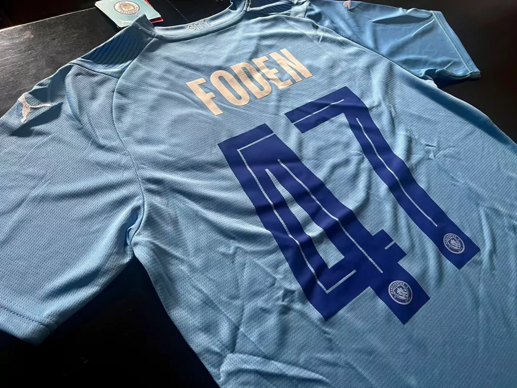 Camiseta titular de mangas largas del Manchester City temporada 2023/24 versión jugador sin parches en las mangas y sin estampado o con Julián Álvarez 19