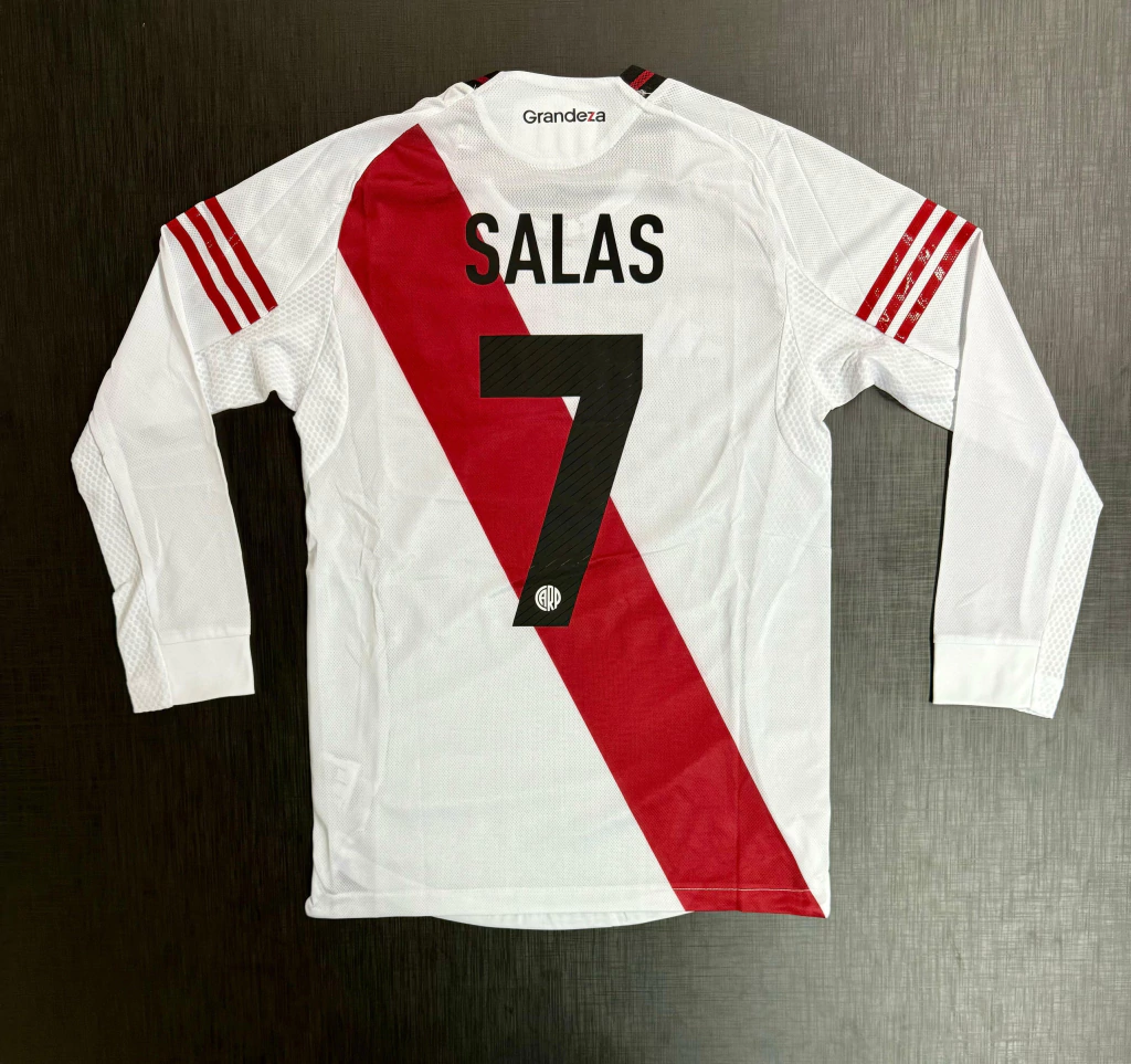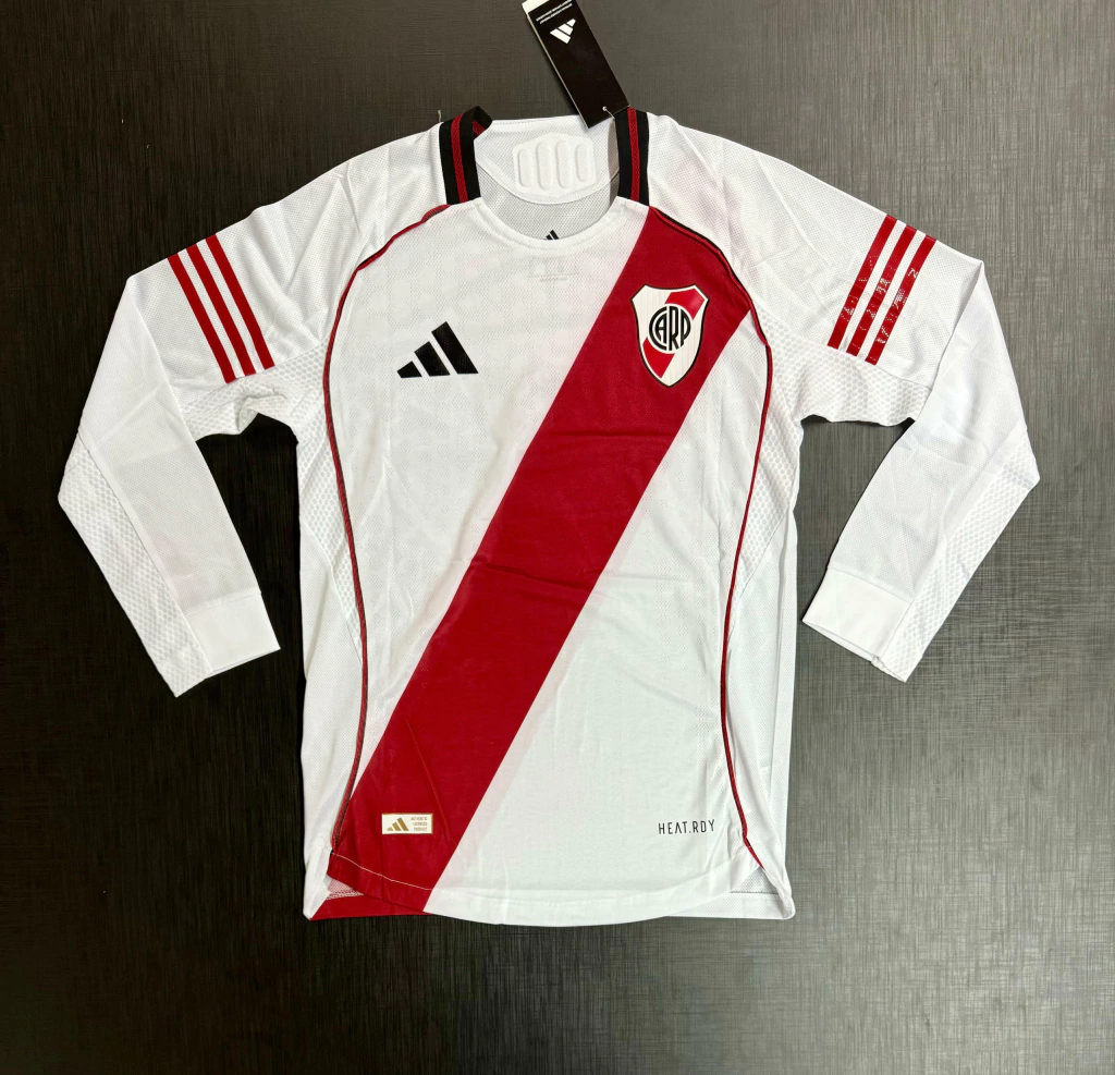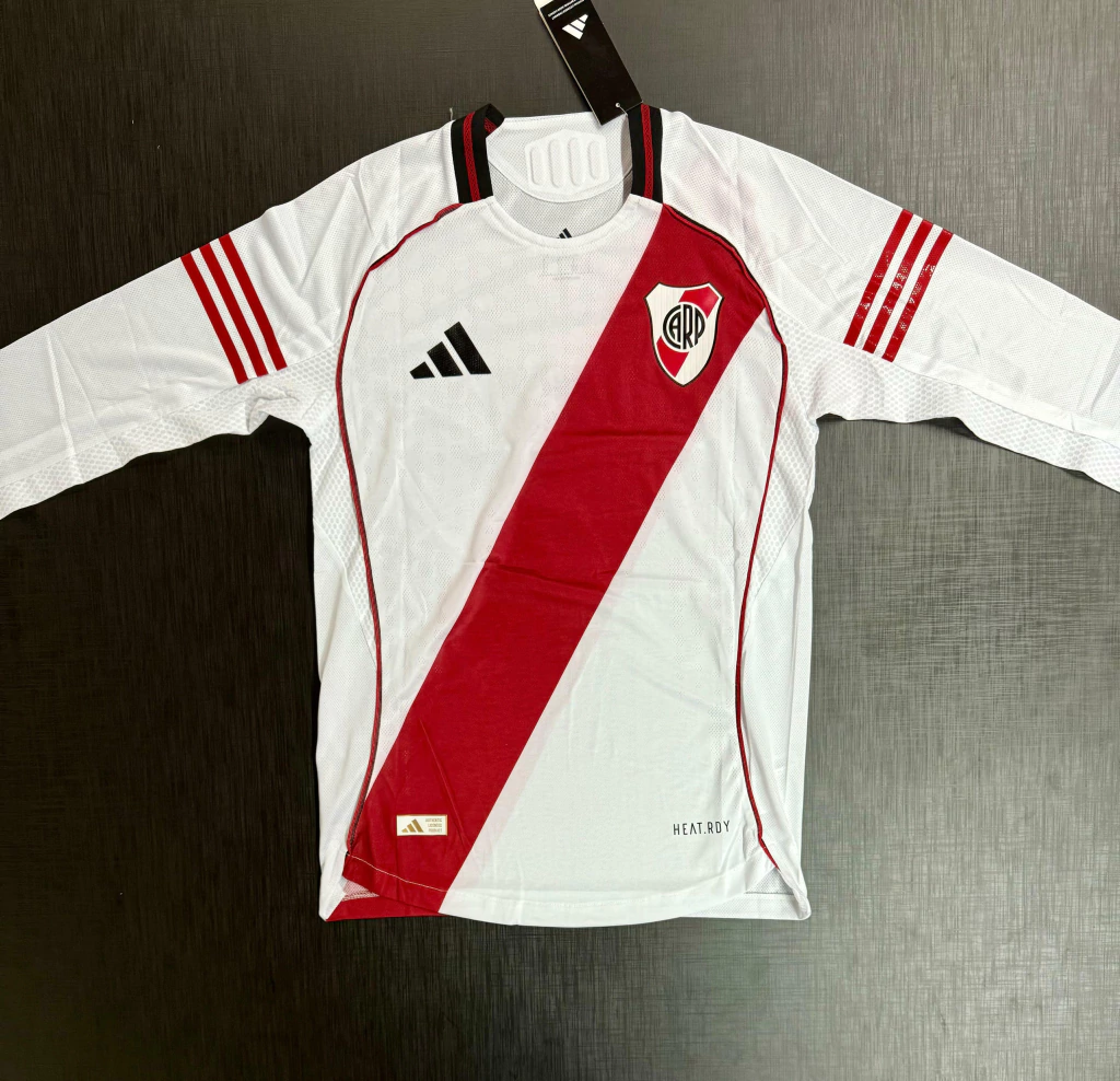 Camiseta titular del River Plate temporada 2025/26 en versión jugador (HeatRdy) manga larga sin estampado ni parches o con estampado.